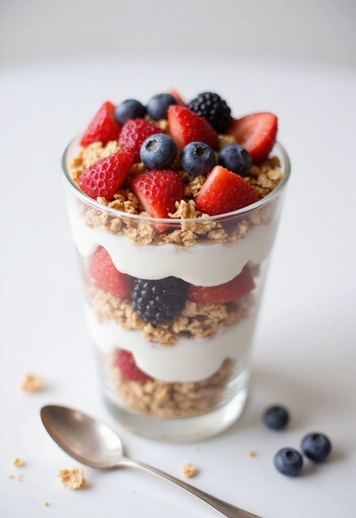 Repeat: Add another generous layer of yogurt, followed by more granola and berries. Repeat this process until you reach the top of the glass.