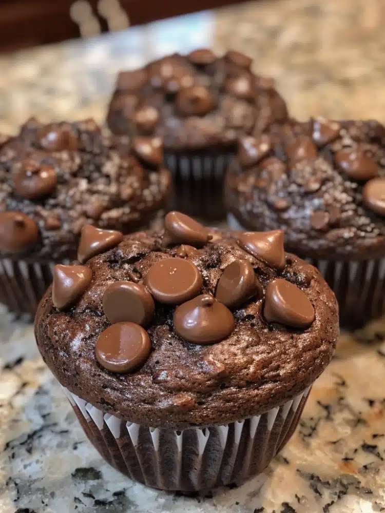 Bake: Scoop the batter evenly into the muffin cups. Sprinkle the remaining chocolate chips on top of each muffin for that professional, bakery-style look.